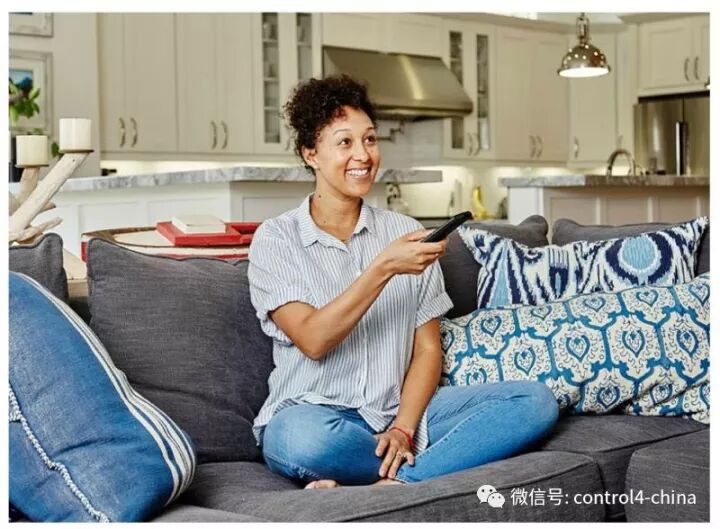 智能家居对于他们来说——因为他们现在还不知道智能家居是什么——就是他们在说“妈妈,我想要看这个”的时候,我再也不用到处找遥控器,边自言自语,好的——等一下——我要找电视机遥控器,然后播放机,然后电视盒……而是我只要按一键,所有的设备都会打开,然后滑动菜单,选择他们想要看的,点击一下,他们就可以愉快地观看了。这个功能对我而言实在太棒了,我只需要几秒钟孩子们爱看的动画片《海洋奇缘》就开始播放了。